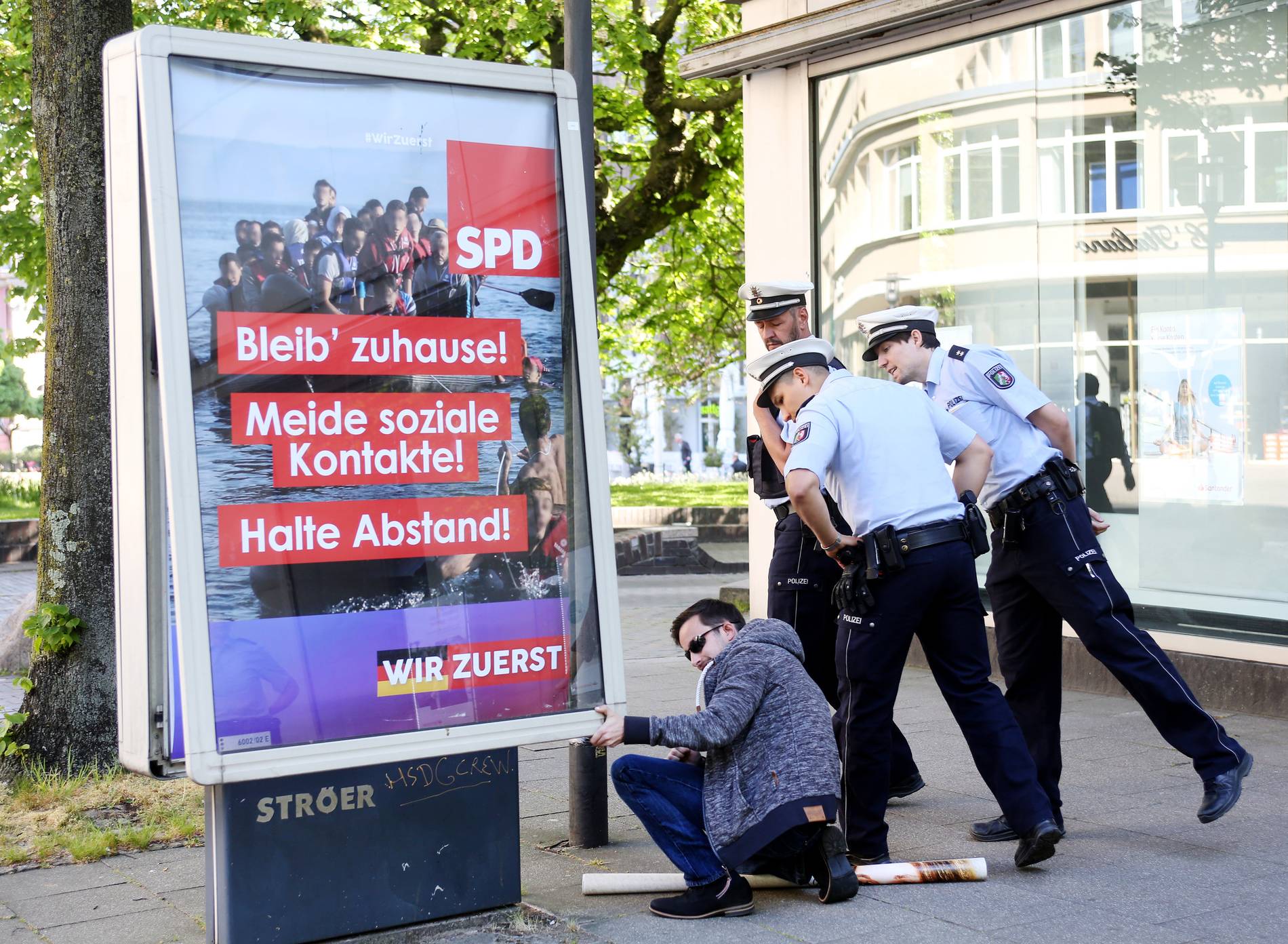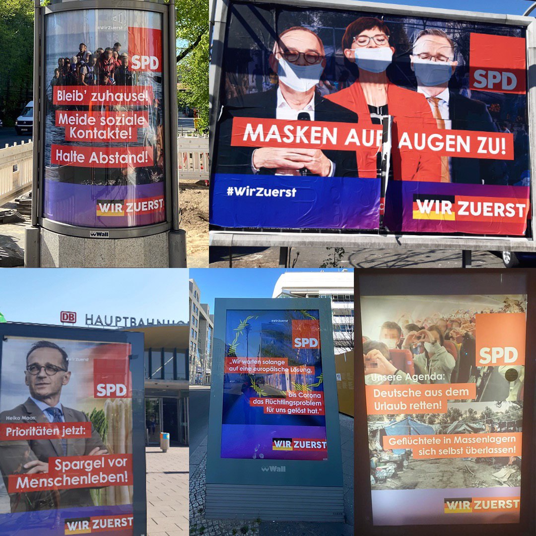 Als die SPD mittels Adbusting für ihre Flüchtlingspolitik in der Zeit Coronas kritisiert wurde, beklagte deren Verband in Essen eine „Verleumdungskampagne“ und „hohe kriminelle Energie“, die den „demokratischen Diskurs“ beschädige. Man habe Strafanzeige erstattet und sei im „ständigen Austausch“ mit der Polizei., die extra dafür eine Sonderkommission gegründet hat.