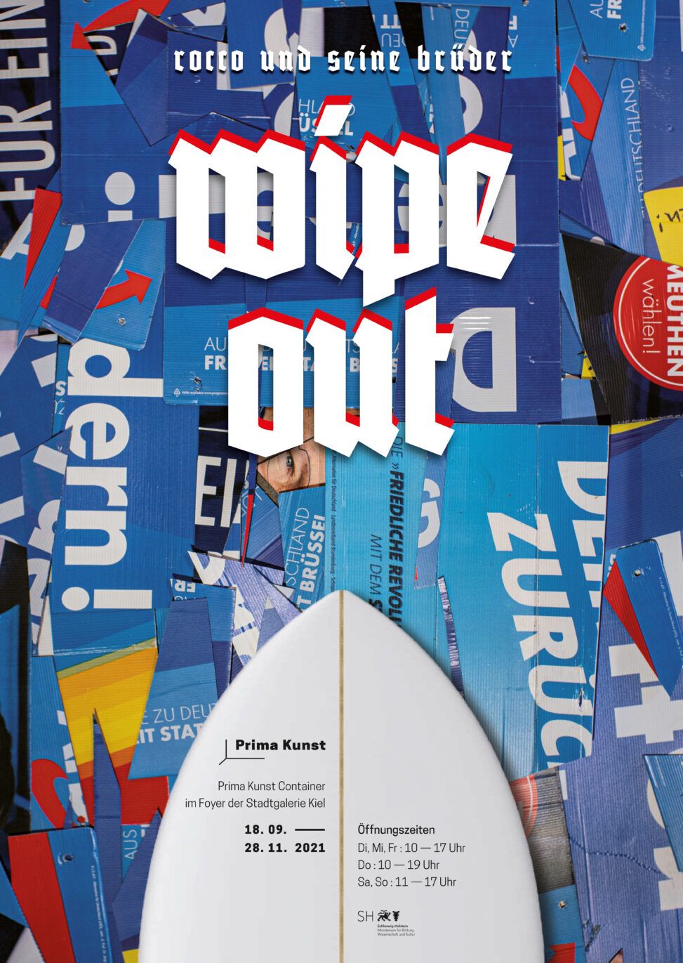 Auf Einladung vom Verein Prima Kunst und der Stadtgalerie Kiel ist dort kurz vor der Bundestagswahl die Multimedia- Installation WIPE OUT entstanden.