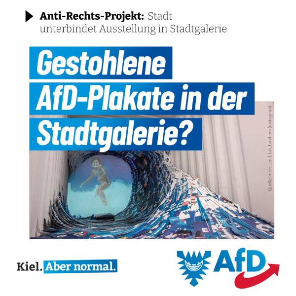 Doch kurz vor der Eröffnung der neuen Ausstellung der Stadtgalerie wurde die Installation von der Stadt Kiel unterbunden. Das Argument: „Die geplante Ausstellung war … nicht mit der politischen Neutralität zu vereinbaren, die zu Zeiten eines Wahlkampfes in städtischen Räumen unerlässlich ist.“